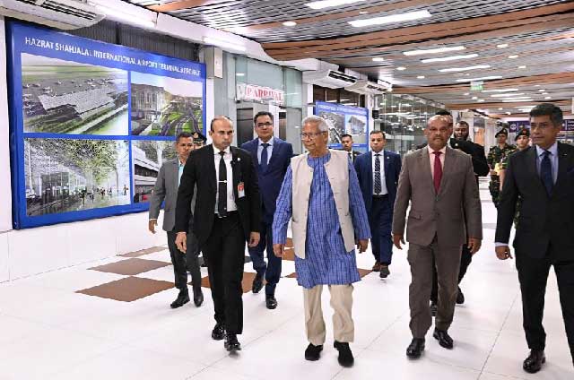 প্রধান উপদেষ্টা ও তার সফরসঙ্গীদের বহনকারী এমিরেটস এয়ার লাইন্সের ফ্লাইটটি আজ সোমবার সন্ধ্যা ৭ টা ৩০ মিনিটে হজরত শাহজালাল আন্তর্জাতিক বিমানবন্দর ত্যাগ করে।