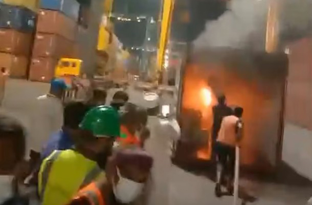 বন্দর ও কাস্টমস সূত্রে জানা যায়, গত ১৯ সেপ্টেম্বর এম ইয়োকোহামা জাহাজে সিঙ্গাপুর থেকে কনটেইনারটি বন্দরে আনা হয়। ২৪ সেপ্টেম্বর কনটেইনারটি বন্দর চত্বরে রাখা হয়। গতকাল বুধবার রাত আটটার দিকে কনটেইনারটি থেকে ধোঁয়া বের হতে থাকে। তাৎক্ষণিকভাবে বন্দরের ফায়ার সার্ভিসসহ নিরাপত্তাকর্মীরা এসে আগুন নিয়ন্ত্রণে আনেন।