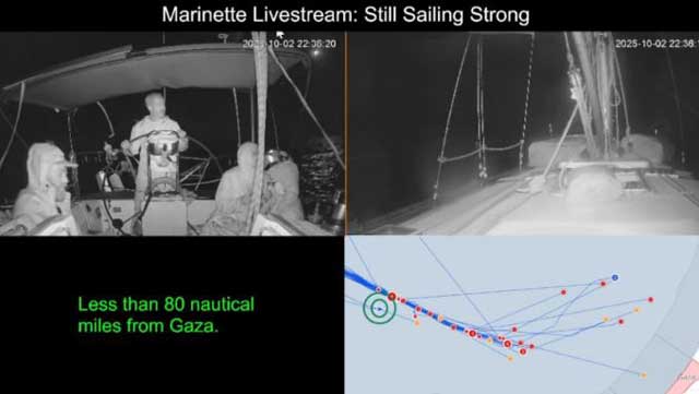 ফ্লোটিলার শেষ জাহাজ ম্যারিনেটের লাইভ স্ট্রিম। ছবি: ভিডিও থেকে স্ক্রিনশট