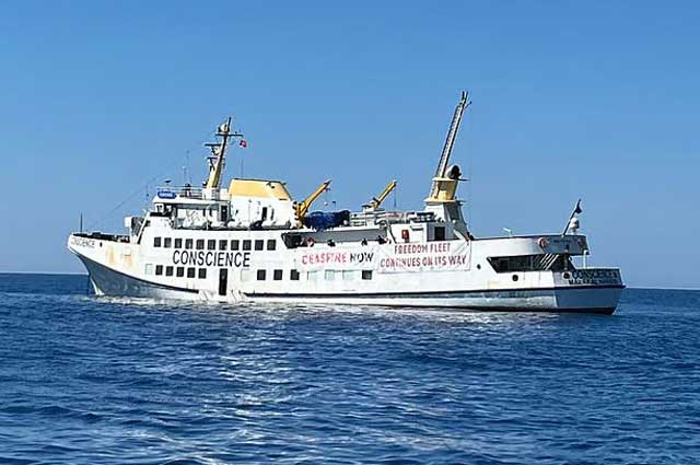 ফ্রিডম ফ্লোটিলা কোয়ালিশনের ওয়েবসাইটে বলা হয়েছে, ‘কনসায়েন্স’ নামের জাহাজটিতে ২৫টি দেশের সাংবাদিক ও স্বাস্থ্যকর্মী আছেন। এফএফসির সর্বশেষ এই মিশন গত বুধবার যাত্রা শুরু করে। ইসরায়েলের অবৈধ অবরোধ ও সংবাদমাধ্যমের স্বাধীনতা নিশ্চিত করার লক্ষ্যে গাজা অভিমুখে রওনা হয়েছে আন্তর্জাতিক সাংবাদিক ও চিকিৎসকবাহী এই জাহাজ।