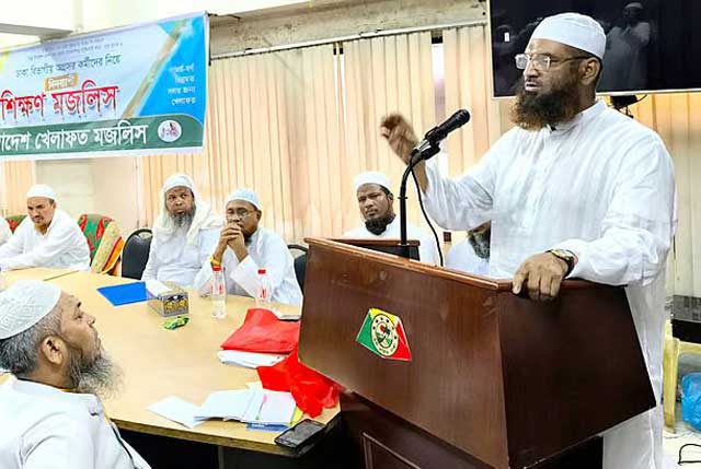 দলের এক প্রশিক্ষণ মজলিশে বাংলাদেশ খেলাফত মজলিসের আমির মাওলানা মামুনুল হক বক্তব্য দেন। ছবি: আয়োজকদের সৌজন্যে